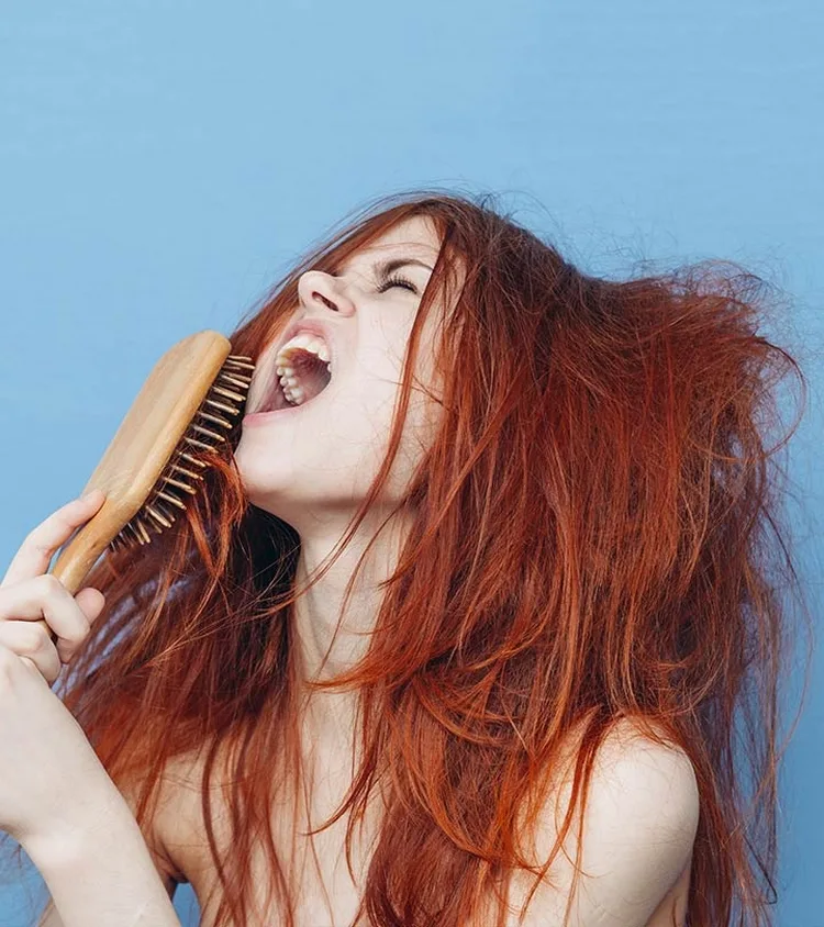 Частые укладки. Фен и плойки разрушают защитную структуру волос. Из-за этого волосы спутываются и собираются в комок
