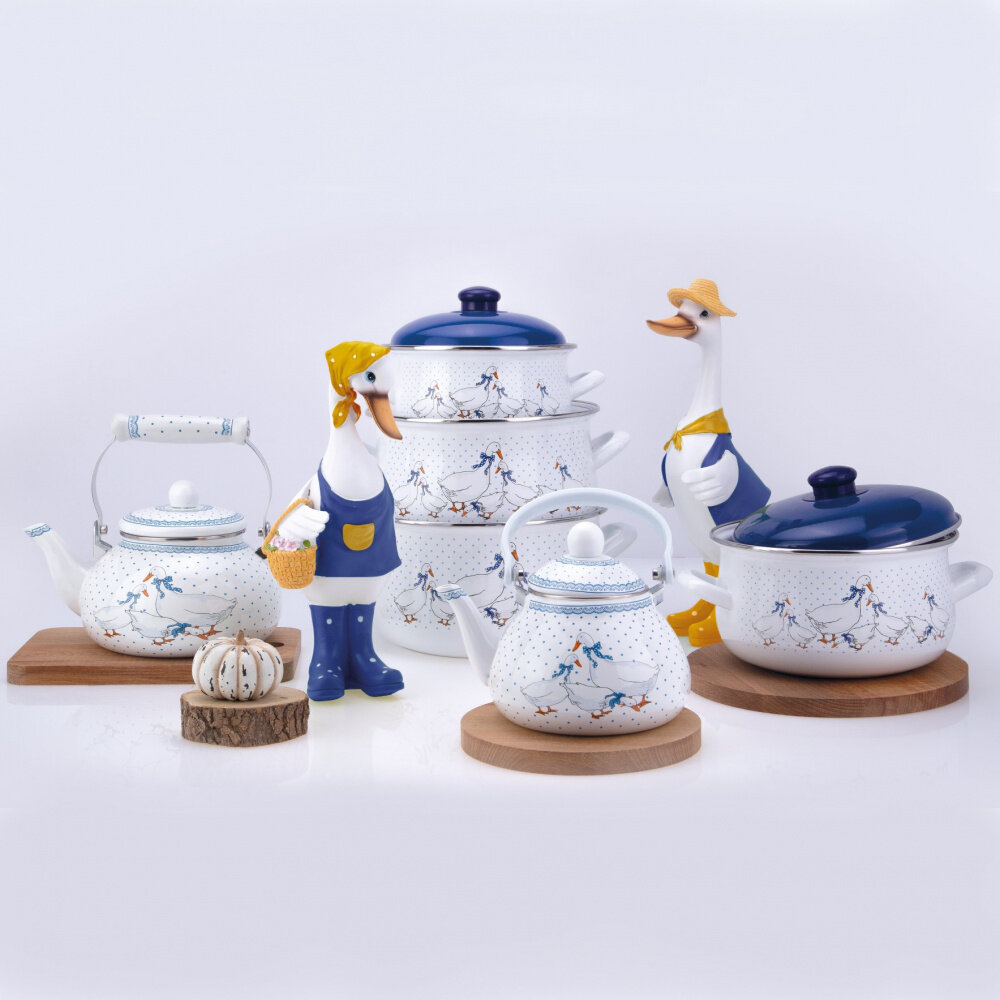 Всем известный декор " Гуси " теперь доступен и на серии одноименной эмалированной посуды производства Agness.