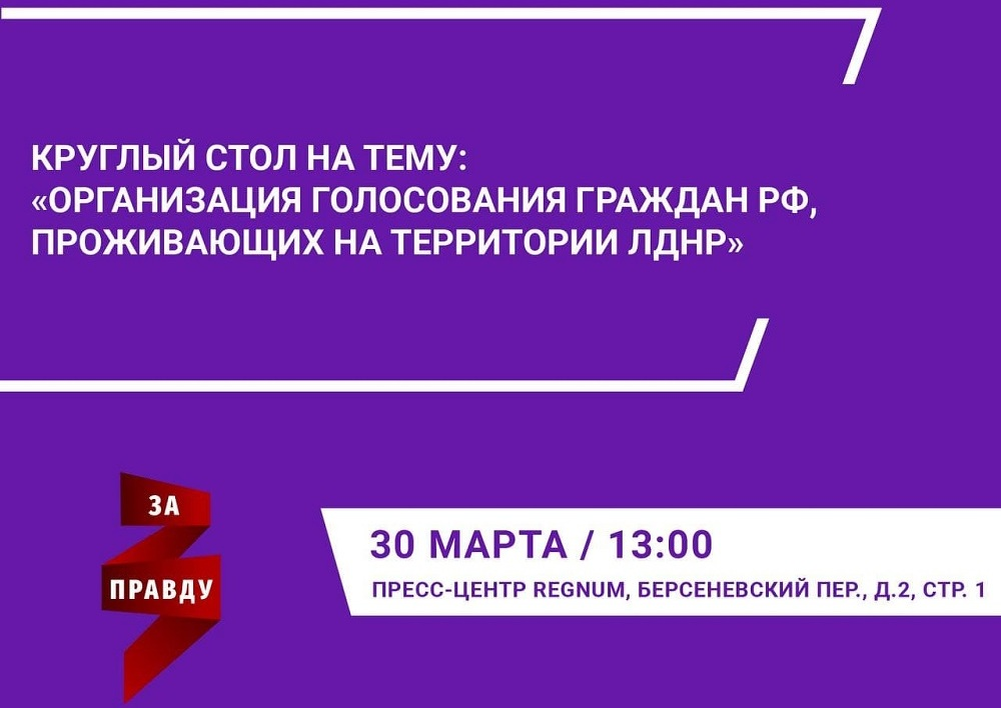 Во вторник, 30 марта, по инициативе Движения Захара Прилепина состоится круглый стол на тему «Организация голосования граждан Российской Федерации, проживающих на территории ЛДНР», на который приглашены представители органов законодательной власти, системы избирательных комиссий, общественных организаций и политических партий, эксперты в области избирательного права, а также представители