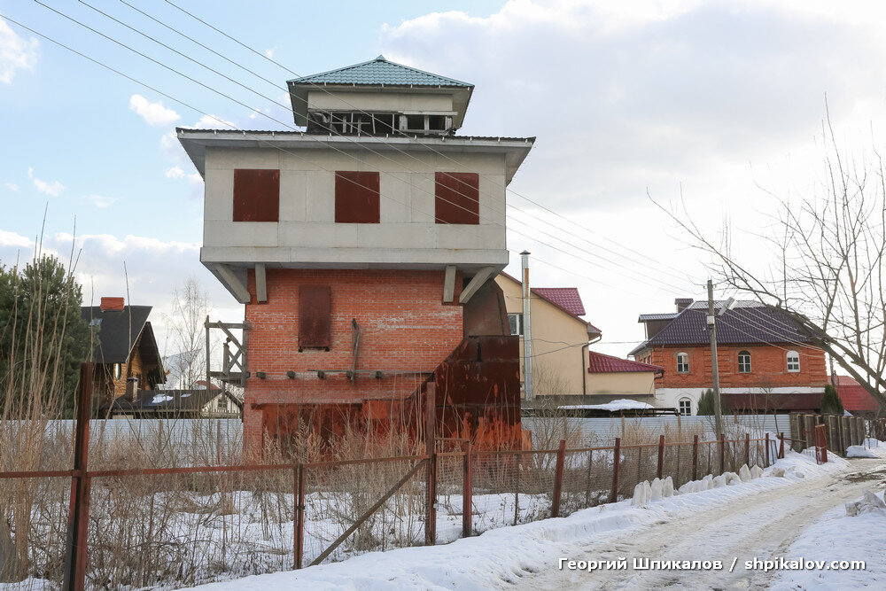 В выходные ездил с товарищем на его дачный участок в Подмосковье, и пополнил свою коллекцию безумных строений. Вы только посмотрите, друзья, на этот дом-башню, построенный на небольшом участке.