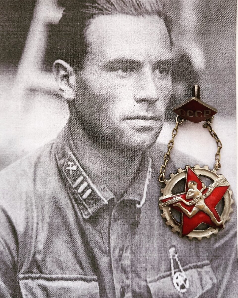 Пожарный Ленинграда 1930-е годы XX века со знаком "Готов к труду и обороне"