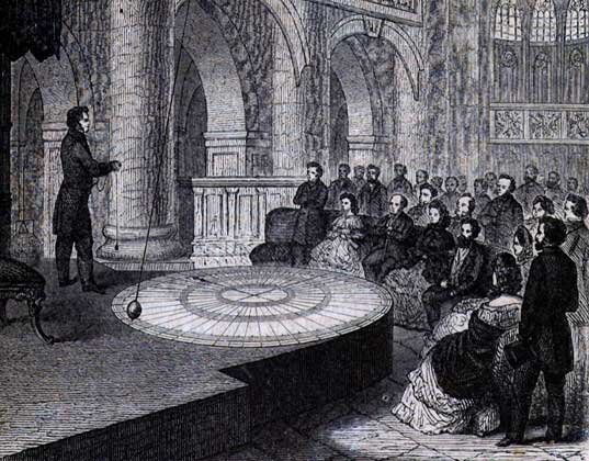 МАЯТНИК ФУКО устройство, наглядно демонстрирующее вращение Земли. Его изобретение приписывают Ж. Фуко (1819-1868). Вначале опыт был выполнен в узком кругу, но так заинтересовал Л. Бонапарта (позднее ставшего Наполеоном III, французским императором), что он предложил Фуко повторить его публично в грандиозном масштабе под куполом Пантеона в Париже. Эту публичную демонстрацию, устроенную в 1851, и принято называть опытом Фуко. Собственно маятник был известен и до этого опыта, Фуко же показал в ходе своего эксперимента не сам маятник, а обосновал вращение земли вокруг своей оси