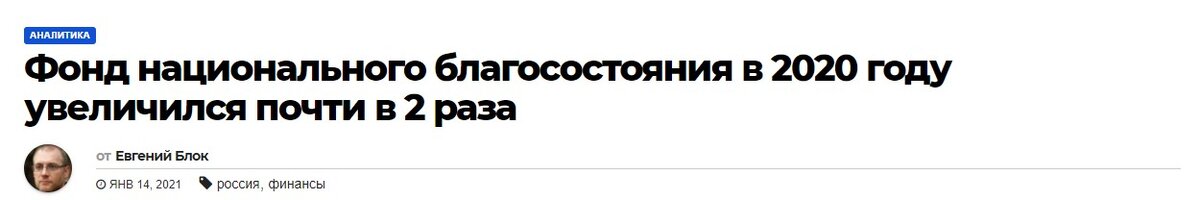 Как вы знаете, единственный российский резервный фонд - Фонд Национального Благосостояния имеет четкую тенденцию к росту и не был существенно использован даже в кризисном 2020-м году (наоборот, за этот год он очень существенно вырос).