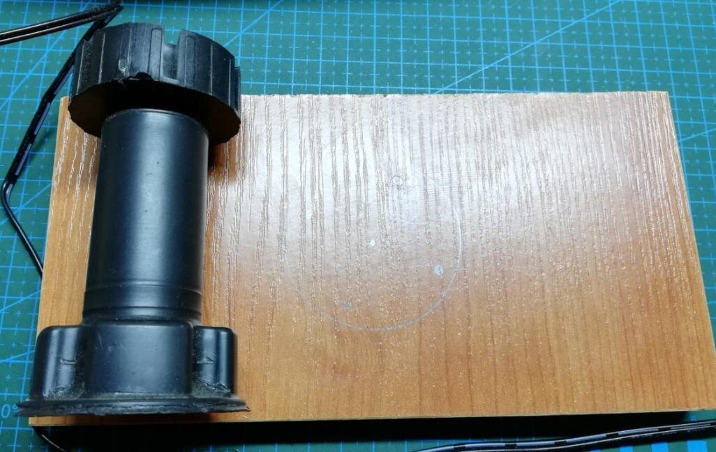 Еще и суперклеем подстраховалась. Получилось крепко и на совесть. Теперь сверху нужна площадка, я взяла кусок МДФ, в середину было решено вогнать палочку (кажется, это была осина), но основная трубка "ножки" на пару мм выше, чем хотелось бы. Для более надежной конструкции мне хотелось все это дело сравнять и тут два варианта: либо отрезать лишнее, либо добавить. Добавить было решено при помощи 3D-ручки и PLA-пластика.