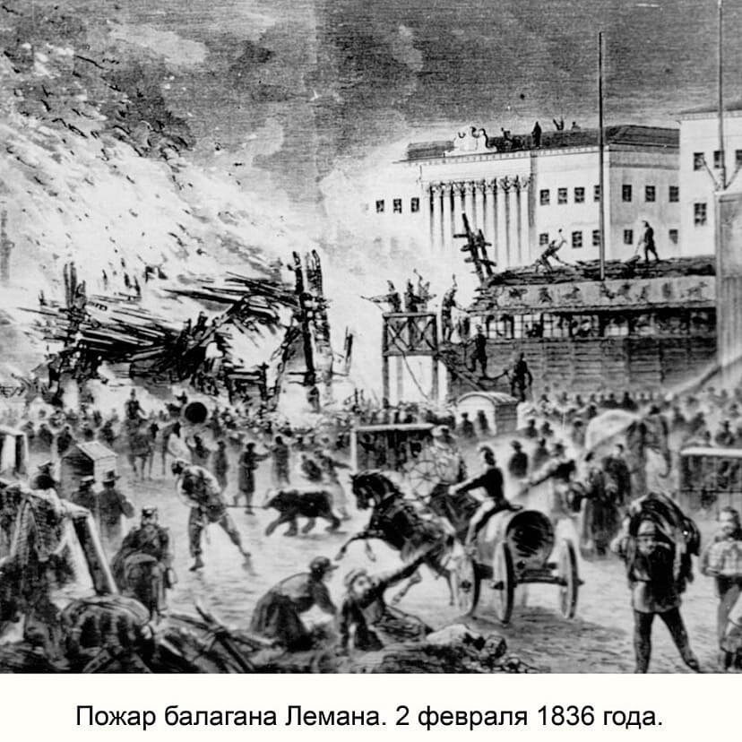 Крупный пожар со множеством погибших, произошедший 2 (14) февраля 1836 года на Адмиралтейской площади в Санкт-Петербурге в балагане известнейшего балаганщика Христиана Лемана. Пожар произошёл во время традиционных масленичных гуляний. Его жертвами стали от 120 по одним до 700 по другим источникам человек. Официально было объявлено о 126 взрослых погибших и 10 тяжело раненных из 400