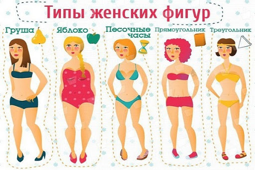 Выделяют 5 основных типов фигур, которые зависят от строения скелета, распределения жировой массы и формы мышц.