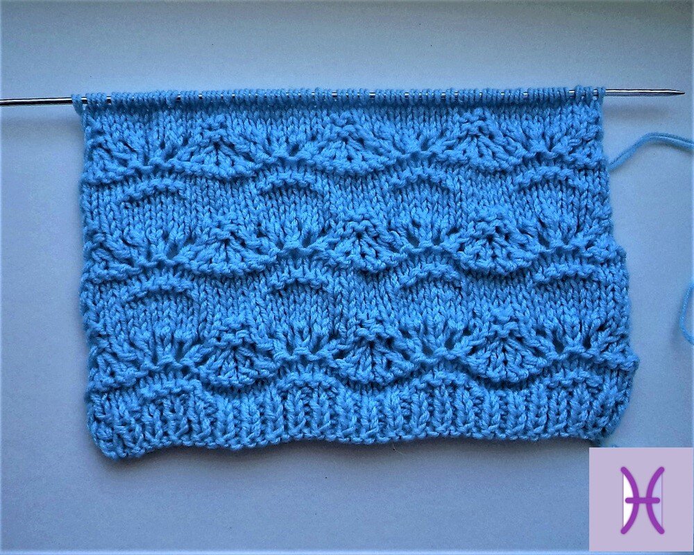 На моем образце внизу узора связана резинка. А если резинку не вывязывать, то край полотна будет волнистым, почти как на образце второго узора.
