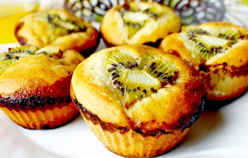 5. В формочки разливаем тесто на 2\3, украшаем киви.