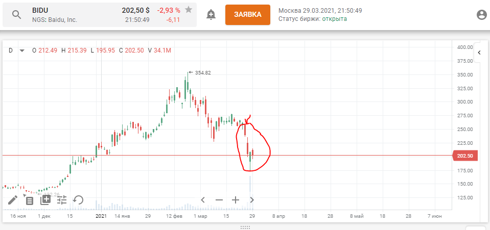 Начну с того, что без новостей ещё на прошлой неделе посыпались такие бумаги как Baidu, Discovery и ViacomCBS. Причем, Baidu из них пострадал меньше всего. Вот, собственно, дневные графики компаний: