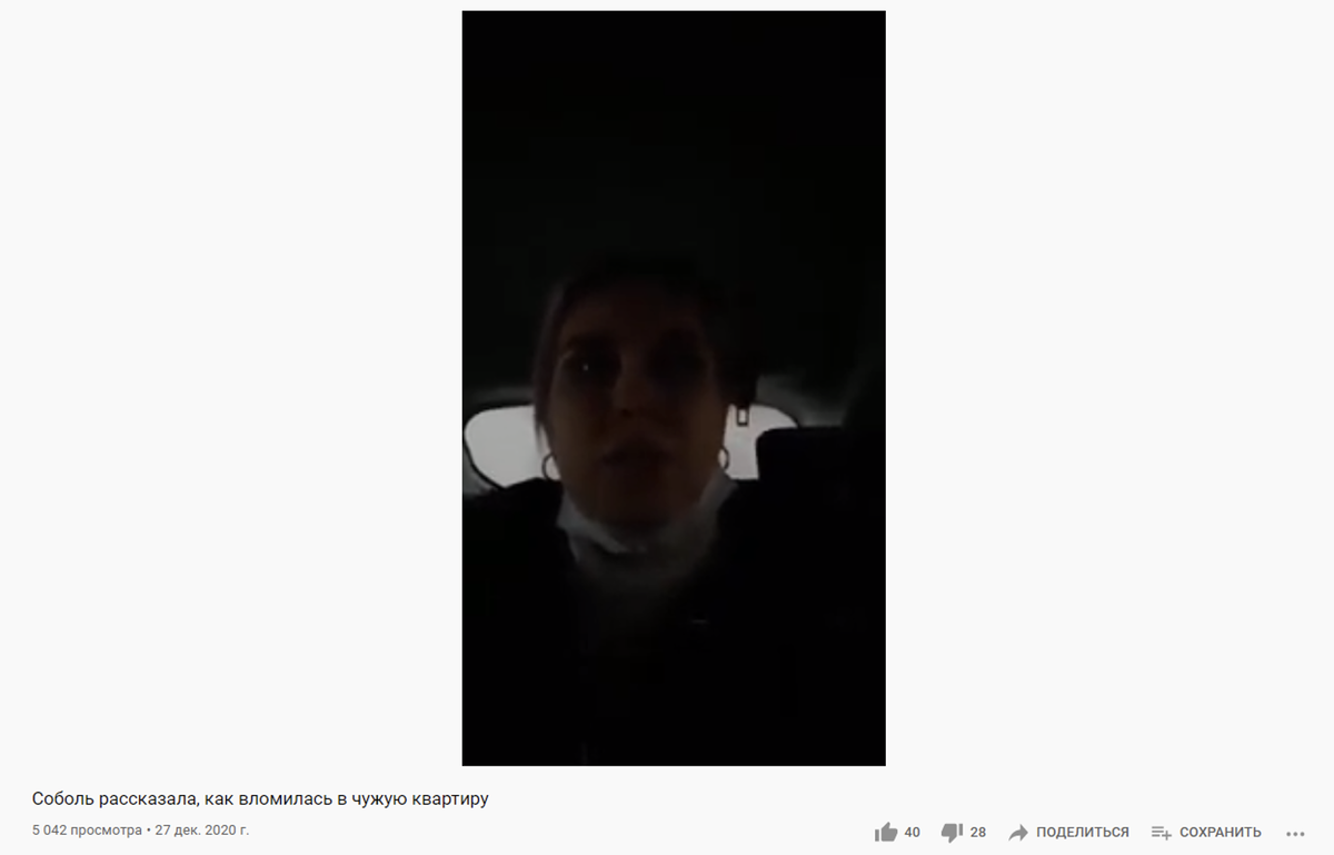 Сама Соболь и ее соратники сразу же стали оправдываться и говорить о том, что никакого проникновения в квартиру не было : мол, Соболь только стояла у двери квартиры и звонила в дверь.