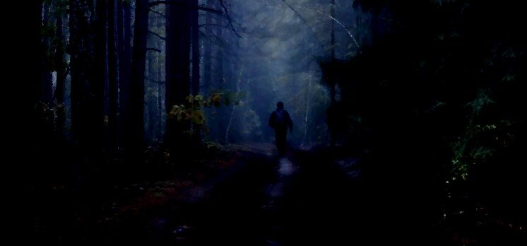 Да вот только взбираться на горку начал и что-то призадумался. Тишина вокруг настала необычная. Даже сверчки замолчали. А следом потемнело всё вокруг.