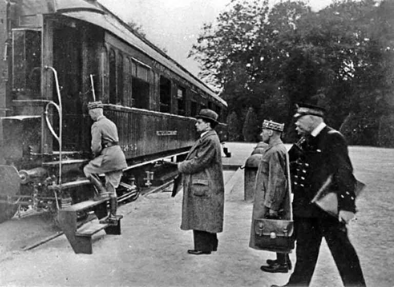 On this very spot, in this very car on November 11, 1918, the Compiènian armistice, humiliating for Germany, was signed, which recorded the disgraceful defeat of Germany in World War I. The signing of a new Compiènian armistice at the same site, according to