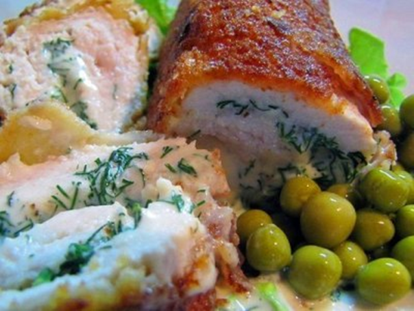 - Надрезы в будущих котлетах заполняем начинкой, аккуратно рукой придавливаем филе.