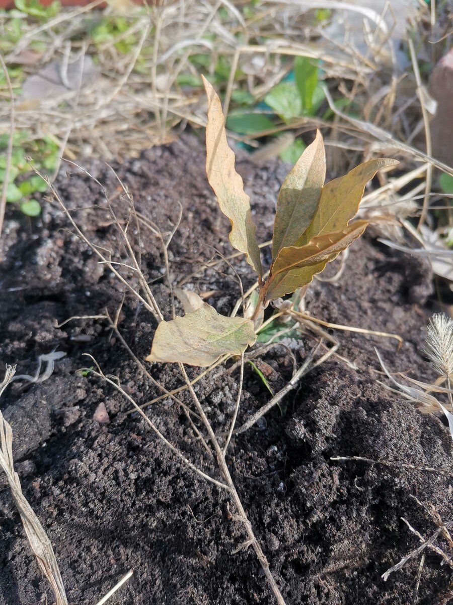 Сегодня, 30 марта решила открыть свой саженец лавра. Он у меня зимовал в открытом грунте под агроспаном 60 единиц. Растет у меня он уже два года. В прошлом году я его укутывала агроспаном 30 единиц, но к сожалению он полностью вымерз. К моему изумлению, где-то ближе к июню вылезли молодые листики и он стал расти от корня. Вырос не высокий, где-то 20 см.