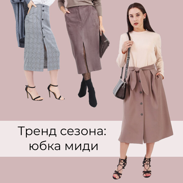 А теперь по традиции перейдем к конкретным примерам и покажем несколько беспроигрышных образов с юбками миди из ассортимента бренда LACY.