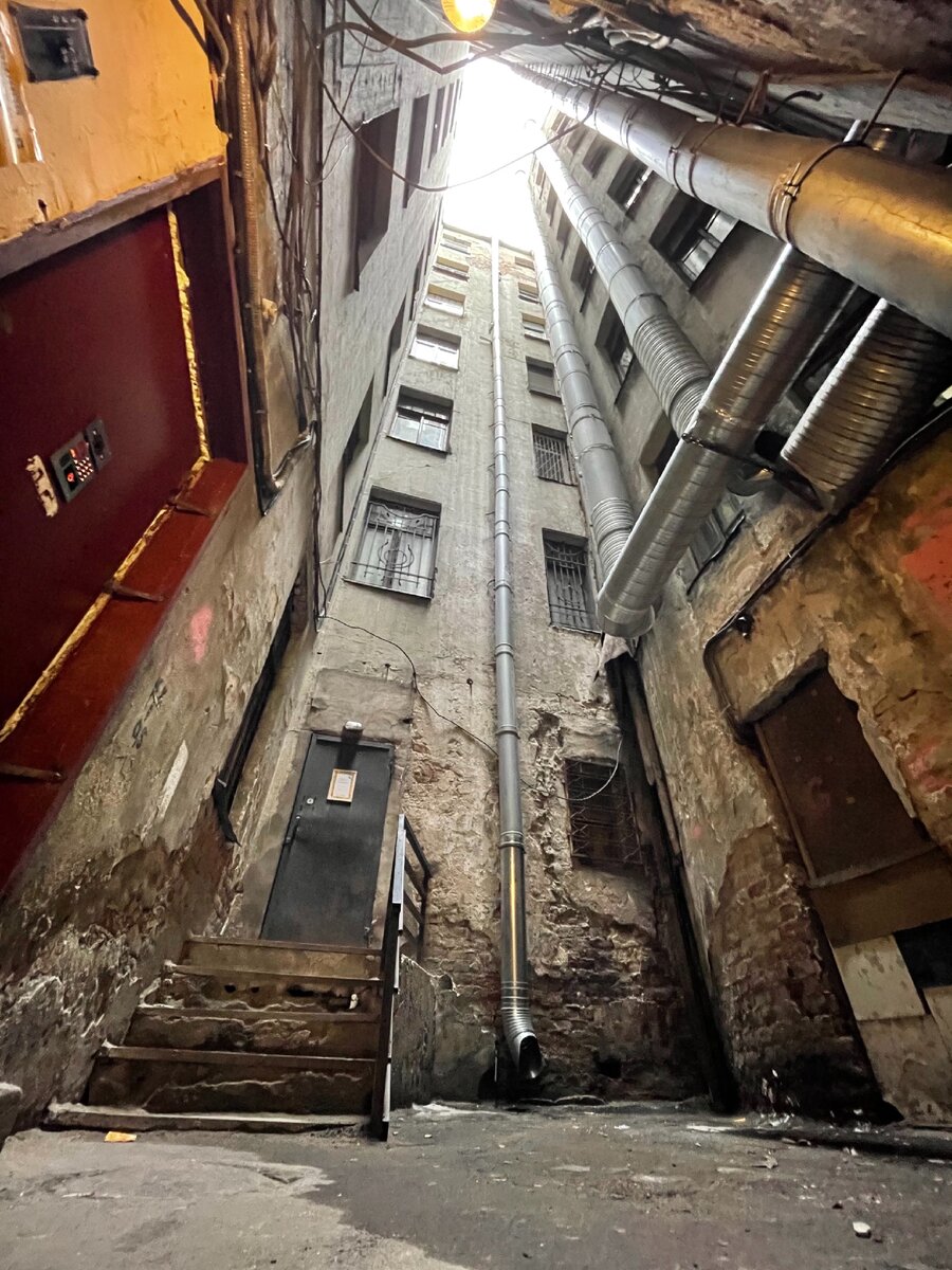 Какой-то совсем холодный и неприветливый утром двор-колодец.