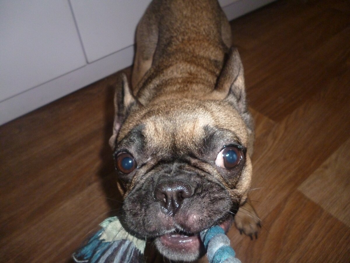 С француженкой Юнкой такой проблемы не было. Не знаю, в чем тут дело, но мои "французы" всегда очень бережно относились к хозяйским рукам. Может быть, это особенность породы. Укусить кого-то из членов своей семьи - немыслимо для француза даже в игре. Возможно, нам просто везло, слыхала от других владельцев этой породы, что кусаются, да еще как.