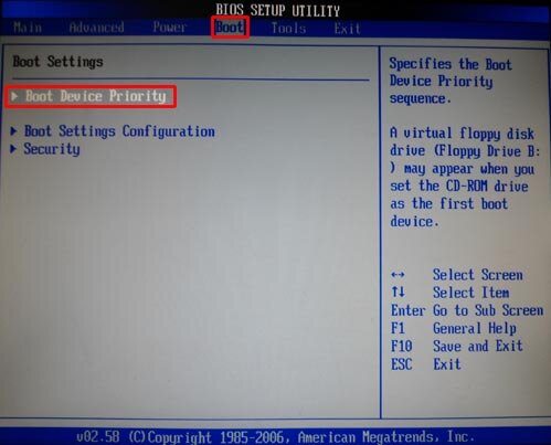 В БИОСЕ нам нужно зайти на вкладку Boot и дальше выбрать Boot Device Priority .