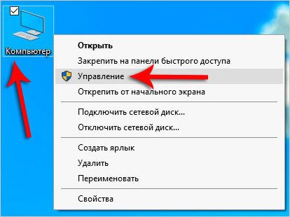Нажмите по разделу Компьютер правой кнопкой и выберите пункт Управление .
