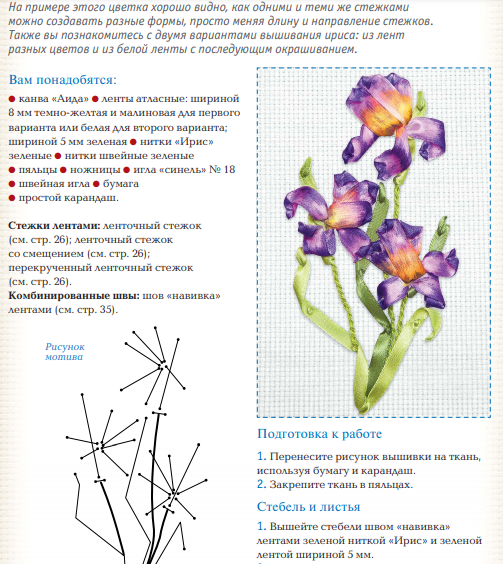 2. Этой же лентой вышейте листья перекрученными ленточными стежками, сделав дополнительные прикрепки на концах стежков.