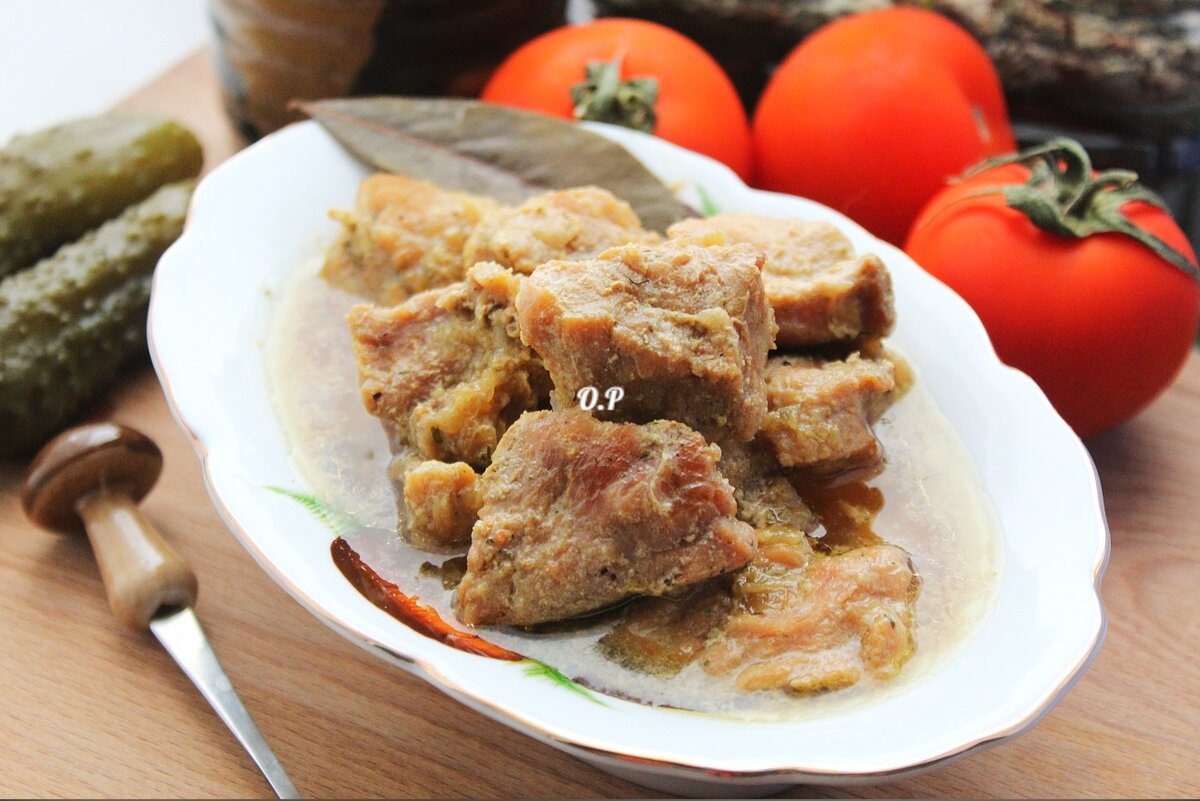 Это рецепт меня очень заинтересовал.Мясо тушится без единой капли воды а получается просто тающим. И самый интересный ингредиент это сода.Не пугайтесь она совсем не чувствуется.А наоборот творит чудеса.