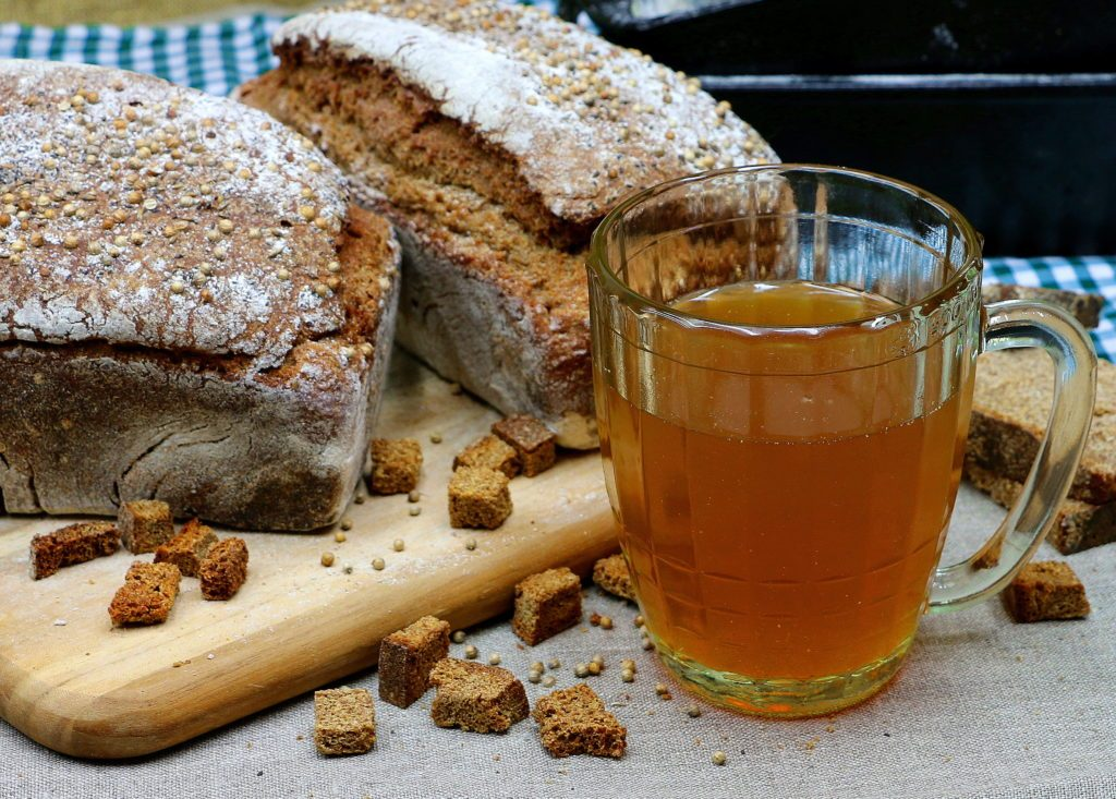 Ржаной хлеб подсушить в духовке до коричневого цвета, положить в кастрюлю и залить кипятком. Держать 5 - 6 часов.