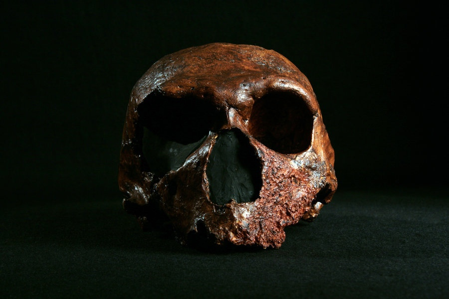 Спустя полвека, в 1991 году, череп был переописан с использованием более современных методов изучения. Которые не оставили от идей Блана камня на камне – следы горения оказались результатом разложения органики, перелома основания черепа не было и в помине, а разложенные кругом кости натащили в грот гиены, долгое время там квартировавшие. Не исключено, кстати, что и череп в свое убежище принесли тоже они.