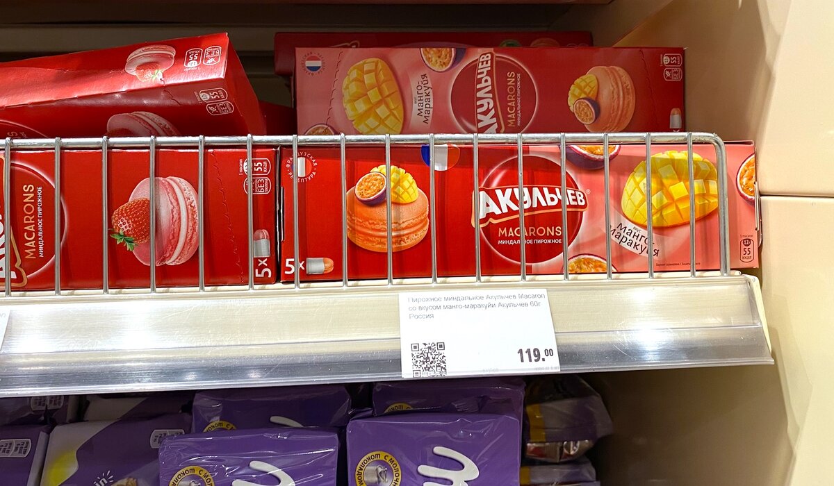 Так вот недавно я закупался в магазине "АВ Маркет" (это такая бюджетная Азбука Вкуса) и там обнаружил дешевый аналог десерта Макаро́н от бренда "Акульчев". Стоил он там 119 рублей, но я так понимаю, это не самая низкая цена, можно найти и дешевле.