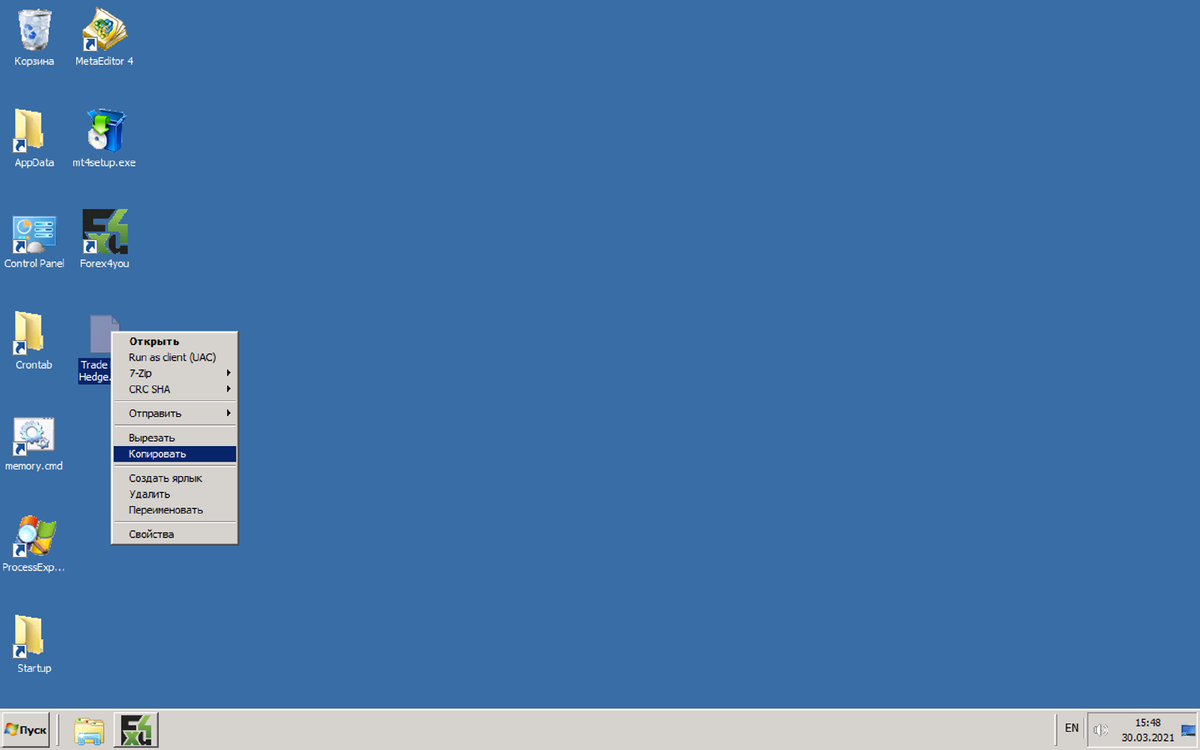 После того как вы перекинули файл на рабочий стол, под названием "Trade Fox Hedge" вам следует нажать правой кнопкой мыши и скопировать его.