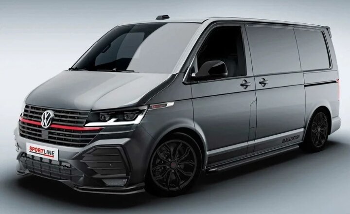 Volkswagen Transporter T6.1 Sportline украшен элементами в стиле GTI, они включают в себя красные акценты на решётке радиатора и заниженные стойки.