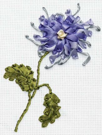 Этот цветок дает полную свободу фантазии. Лепестки можно вышивать самыми разными стежками, используя ленты разных цветов и ширины.