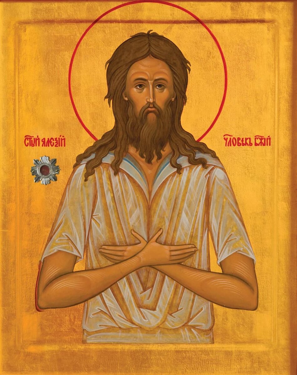 30 МАРТА, ВТОРНИК. ПАМЯТЬ ПРЕПОДОБНОГО АЛЕКСИЯ, ЧЕЛОВЕКА БОЖИЯ Преподобный Алексий родился в Риме в семье благочестивых и нищелюбивых Евфимиана и Аглаиды. Супруги долгое время были бездетны и неустанно молили Господа о даровании потомства. И Господь утешил супругов рождением сына. Когда же он достиг совершеннолетия, родители решили его женить. Оставшись после свадьбы наедине с молодой женой, святой Алексий отдал ей свой золотой перстень и поясную пряжку со словами: «Сохрани это, и да будет между тобой и мной Господь, доколе не обновит нас Своею благодатью». Потом он вышел из брачного покоя и той же ночью покинул отчий дом. Попав в город Э́дессу, где хранился Нерукотворный образ Господа, Алексий продал всё, что у него было, роздал деньги нищим и стал жить при церкви Пресвятой Богородицы на паперти. Преподобный питался только хлебом и водой, а полученное подаяние раздавал немощным и престарелым, так он прожил 17 лет. Однажды Пречистая Дева Мария, явившись во сне церковному сторожу, откры