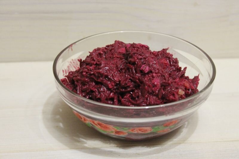 Свеклу трем на средней терке, чеснок там же, яйцо либо на мелкой терке либо измельчаем вилкой, мне вилкой проще.