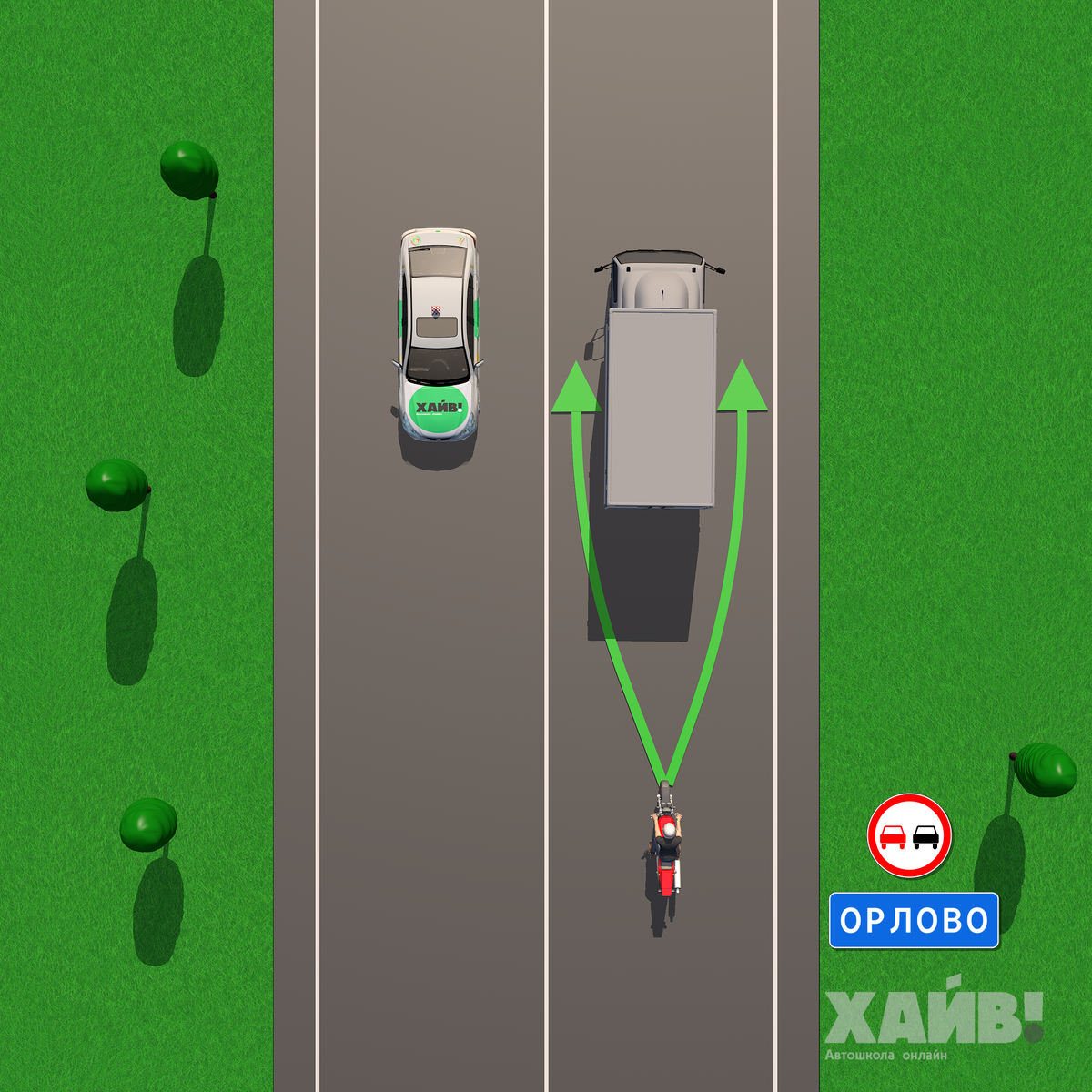 Может ли мотоциклист объехать грузовик?