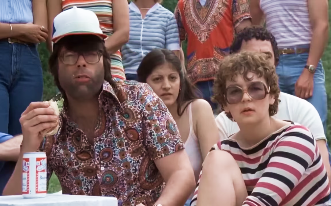 Большинство эпизодов, в которых мелькает Стивен Кинг, находятся в фильмах или сериалах, с которыми он связан либо исходным материалом, либо напрямую с творческим участием, но забавно, что его первый фильм не попадает ни в одну из них этих двух категорий. В боевике «Рыцари-наездники» Кинг ненадолго становится членом публики на ярмарке. (Забавный бонус: женщина, рядом с которой он сидит в кадре, — его жена Табита Кинг).