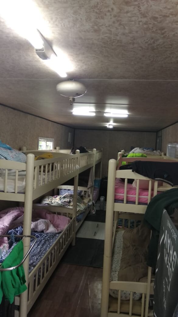 Обычно корейцы и сами работники спят на полу в Корее это норма ,а вот у нас стояли двухъярусные кровати.