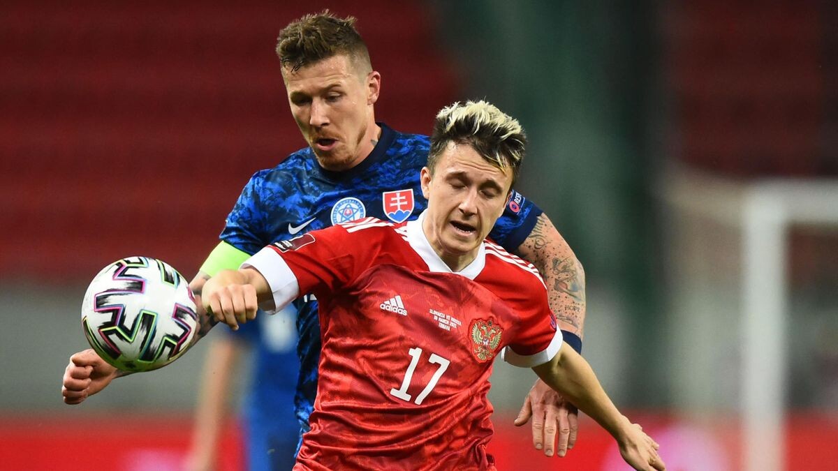 В матче 3-го тура квалификационного раунда чемпионата мира — 2022 сборная России встретилась с национальной командой Словакии. Встреча проходила на стадионе «Сити Арена Трнава» в городе Трнава (Словакия) и завершилась со счётом 2:1 в пользу хозяев. Матч обслуживала бригада арбитров из Испании во главе с Карлосом Дель Серро Гранде.