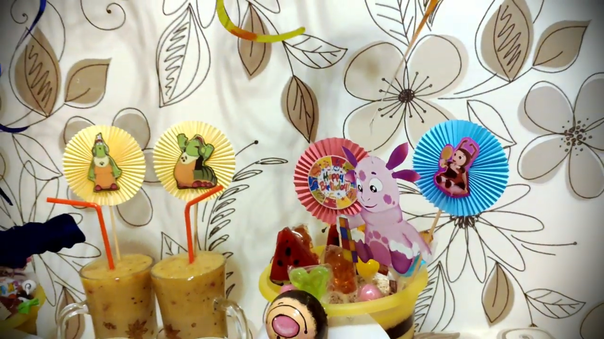 Наш вариант декора готов. Все топперы с героями из Лунтика сделаны из восьми заготовок гармошек, а топперы из распечатанных картинок из шести. Разница совсем небольшая, поэтому делайте на свой вкус.