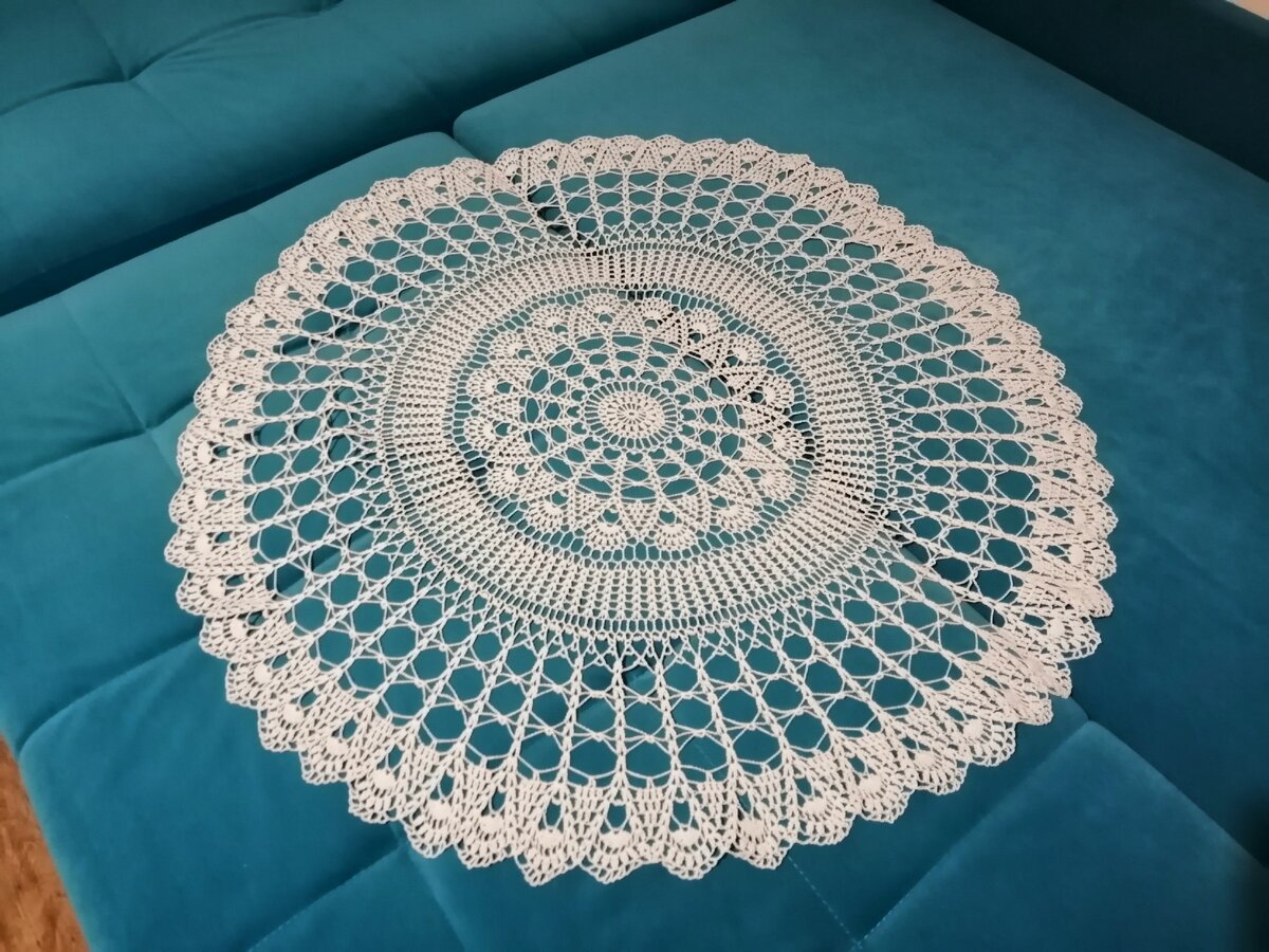 Вот и готова полностью салфетка. Напомню она 105 см в диаметре. Накрахмалила и высушила.