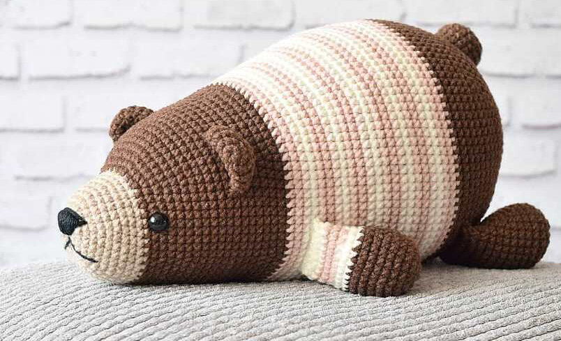 Размер вязанного медведя, при использовании крючка 2мм, получается около 22 см.
