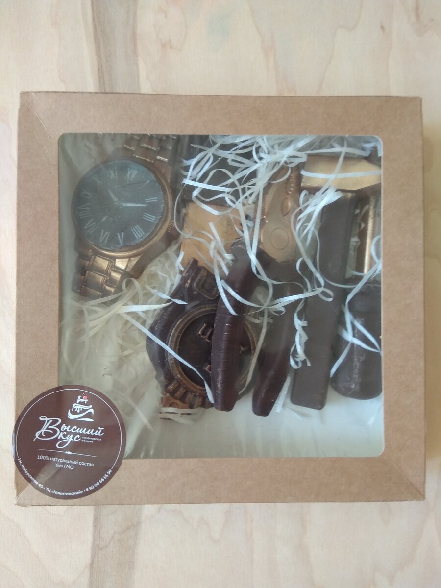 Всем привет! Недавно у друга был день рождения и я решил подарить ему оригинальный подарок. Он большой любитель сладкого, в том числе и шоколада. В поисках чего-то необычного набрёл на отдел местного производителя в одном из торговых центров нашего города. Пообщавшись с продавцом, узнал, что шоколад из которого сделан данный набор не содержит пальмового масла и прочей химии, т.к. владелица