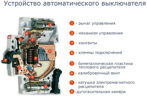 Что находится внутри автоматического выключателя?