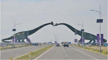 Слева находится Монголия, справа Китай. Поцелуй этих динозавров выглядит очень даже романтично, хотя с точки зрения истории этих стран можно подумать что они готовятся к бою. У Китая и Монголии очень богатая история тесно связанная друг с другом и постройка границы аналогичным образом является напоминанием об этом.
