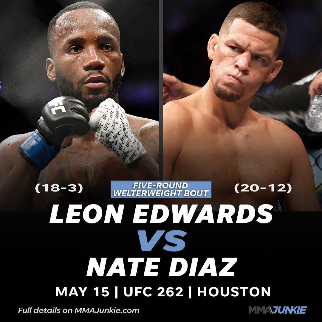 Американский боец ММА Нейт Диаз, выступающий в полусреднем весе, вернется в октагон 15 мая 2021 года. В этот день ему предстоит поединок с британцем Леоном Эдвардсом.