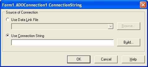 Далее выделяем компонент TADOConnection и в свойстве LoginPromt ставим на False. Это делаем для того, чтобы при подключении к БД у нас не запрашивался пароль, дальше в свойстве ConnectionString нажимаем на кнопку с «…» и появляется окно следующего вида: