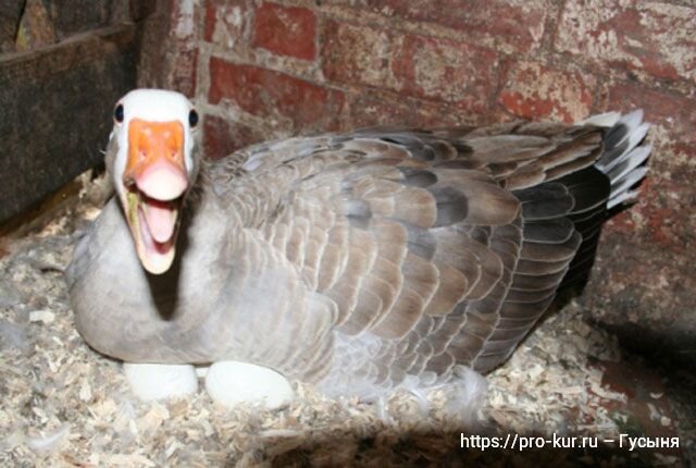 Иногда гусыня, сойдя с гнезда, не спешит возвращаться обратно. Чтобы яйца не охлаждались сильно, самок насильно загоняют на гнездо через 15-20 минут.