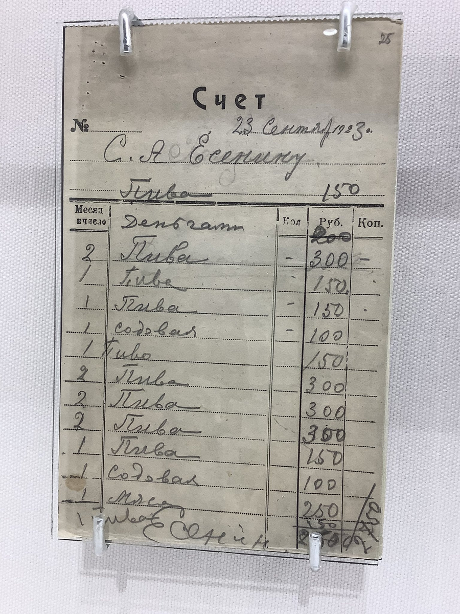 С учетом того, что, в августе он окончательно разошелся с Дункан, видимо, "рванул в Питер". Судя по содовой, сначала подошла одна дама, потом вторая. Что интересно, цены примерно, как сейчас. В 1922 году была проведена деноминация, после гиперинфляции в гражданскую.