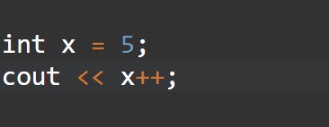 означает, что сначала будет выведено на экран 5, а потом x будет увеличено на единицу. То есть, эквивалентно записи: