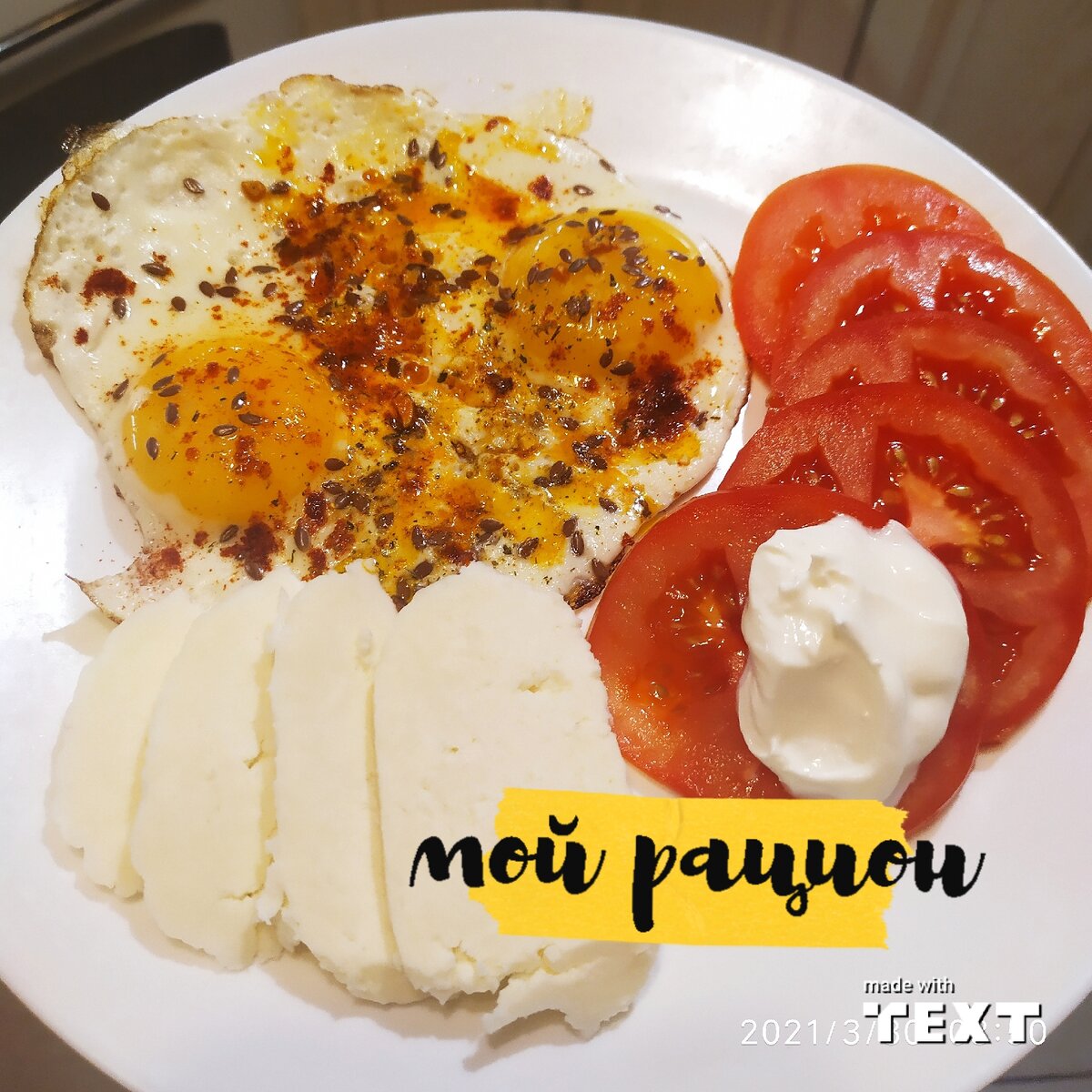 ✅завтрак 7-00 : 2 яйца, адыгейский сыр 100гр., помидор 1 большой, и по столовой ложке 15% сметаны, семян льна и нерафинированного масла.