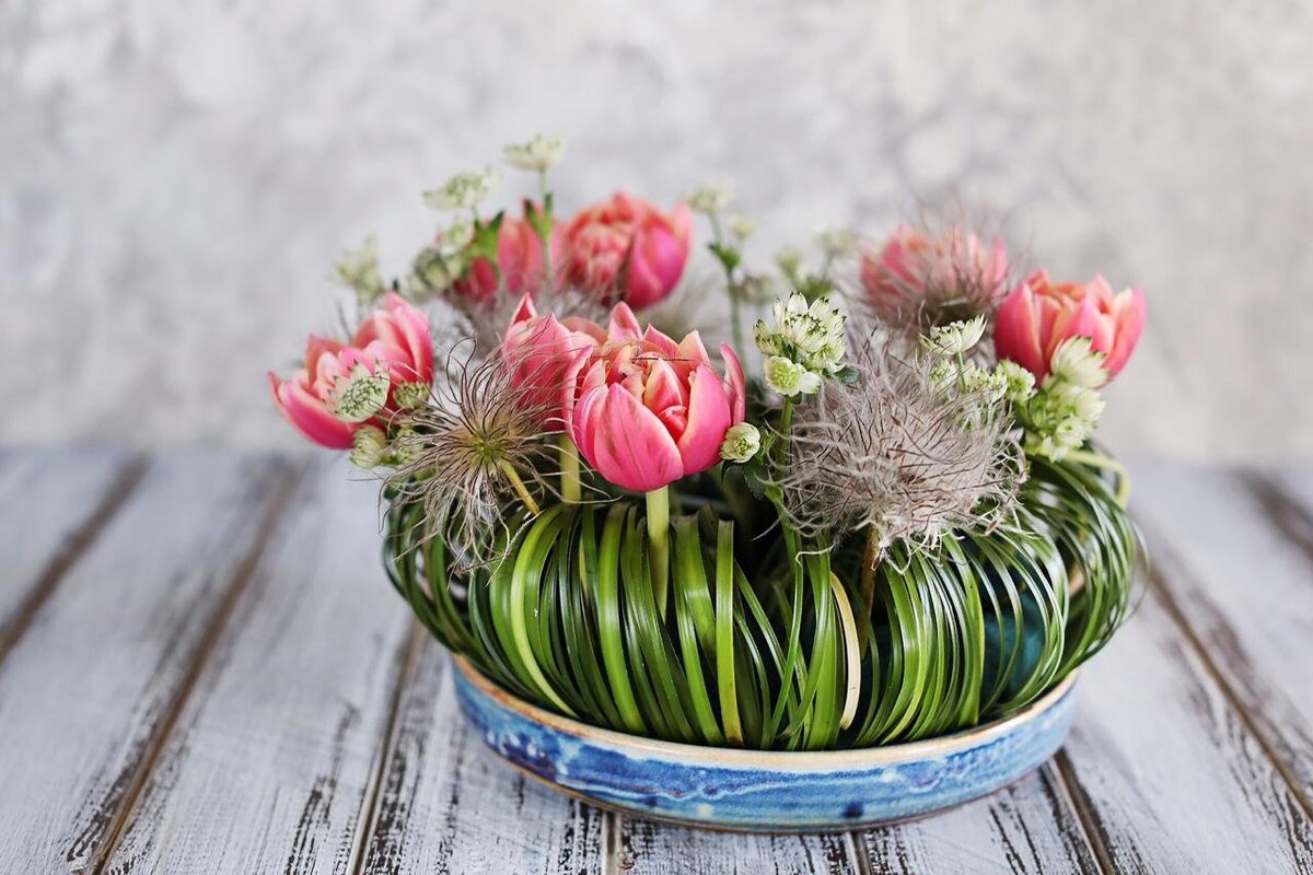 Распространенная ошибка новичков – несоблюдение правила сезонности. Вспоминаем: весенние цветы мы ставим в композиции с весенними или с всесезонными.